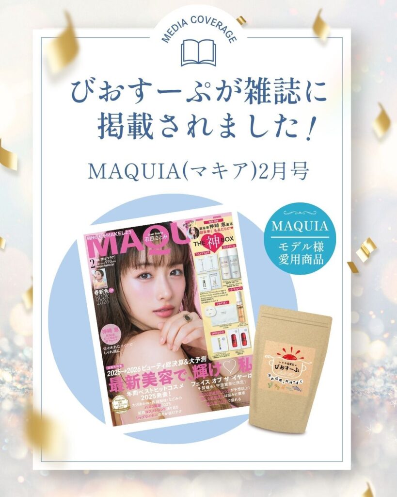 通常の食事やお出汁などでは丸ごと食べるというのは難しいことですが、「びおすーぷ」はそれを可能にしています。「びおすーぷ」は特殊な製法により、タンパク質がペプチド化されているため非常に吸収が良いです。 良質なタンパク質は美容にももちろん重要なので、美肌、美髪を目指す方にもおすすめのスープです。